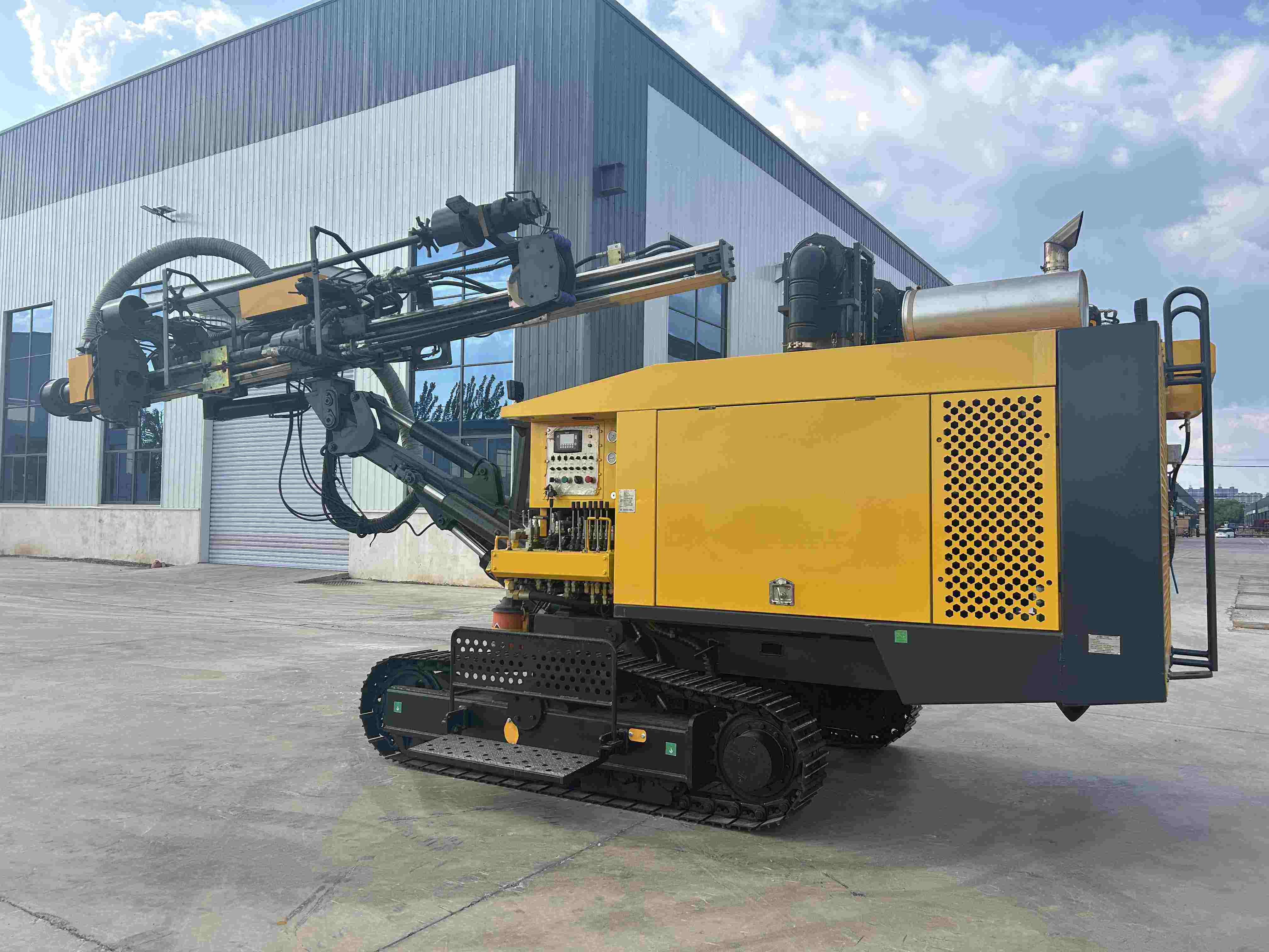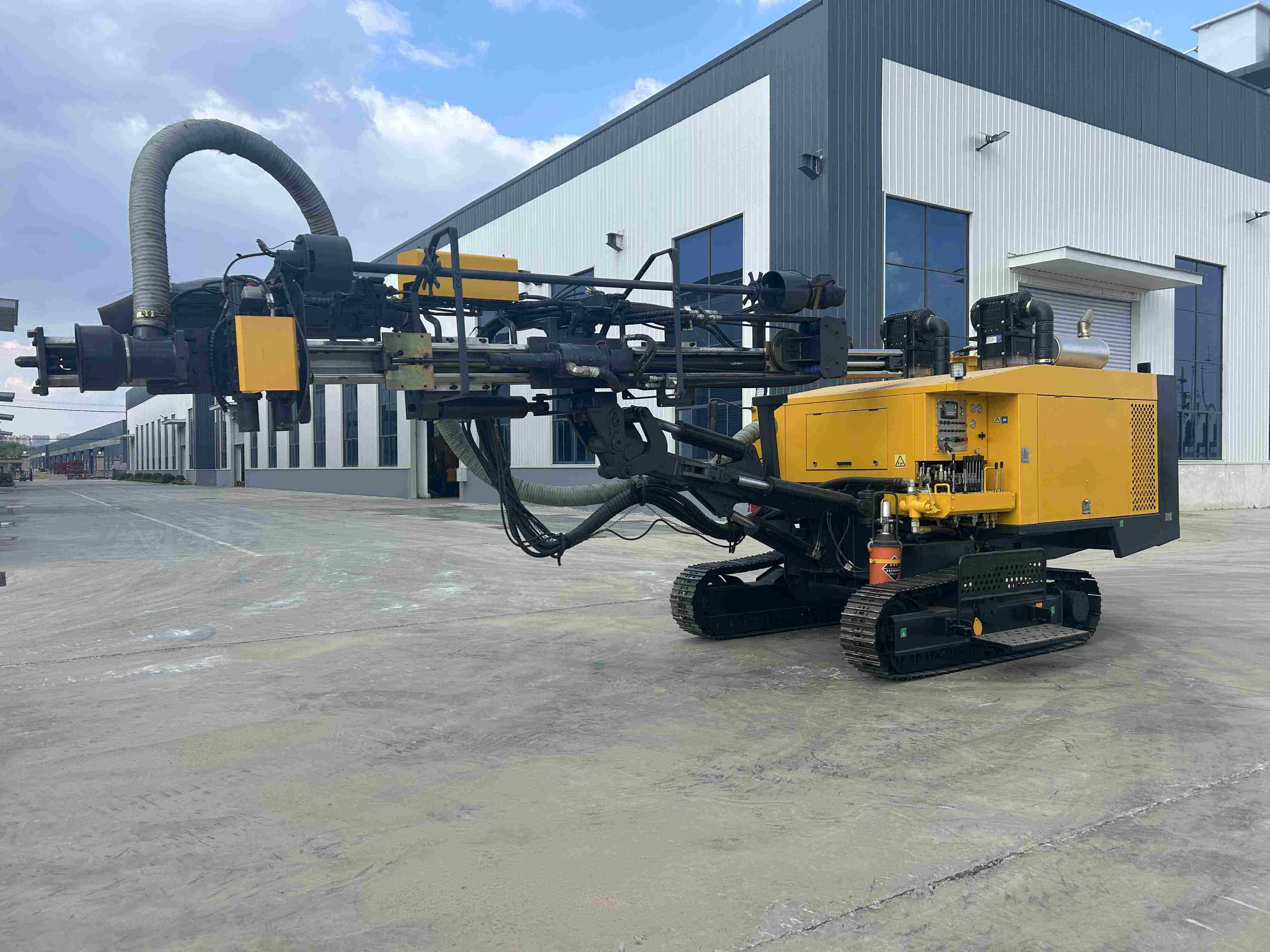 Down-the-hole (DTH) drilling rigs are engineering machines specifically designed for drilling in hard rock formations. Their core feature is the "down-the-hole" working method, where the impactor is lowered to the bottom of the hole. Compressed air or hydraulic pressure drives a piston to directly impact the drill bit, breaking the rock, while the drill rod rotates to cut and remove rock cuttings, achieving efficient impact-rotary composite drilling. This equipment is primarily used for drilling operations in mining blast holes, tunnel engineering, slope anchoring, and geological exploration.