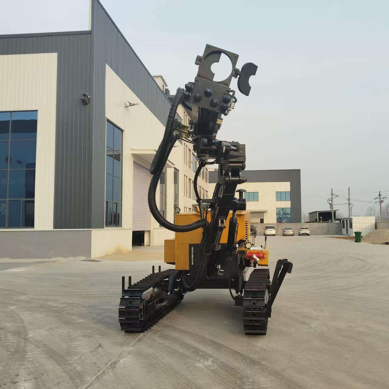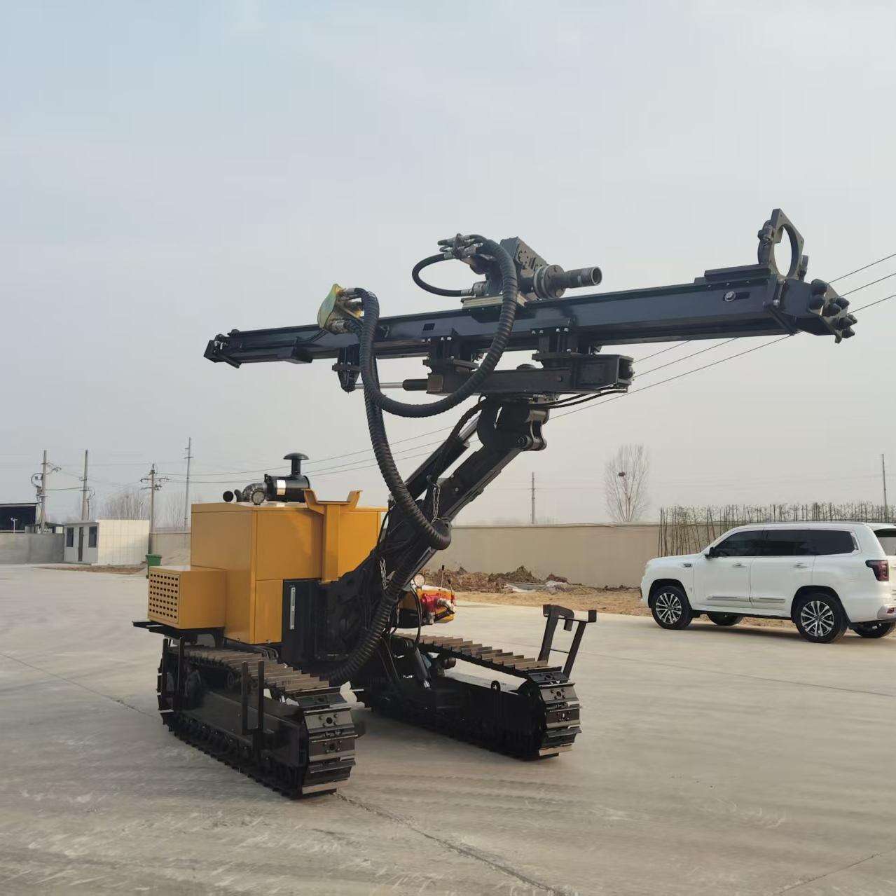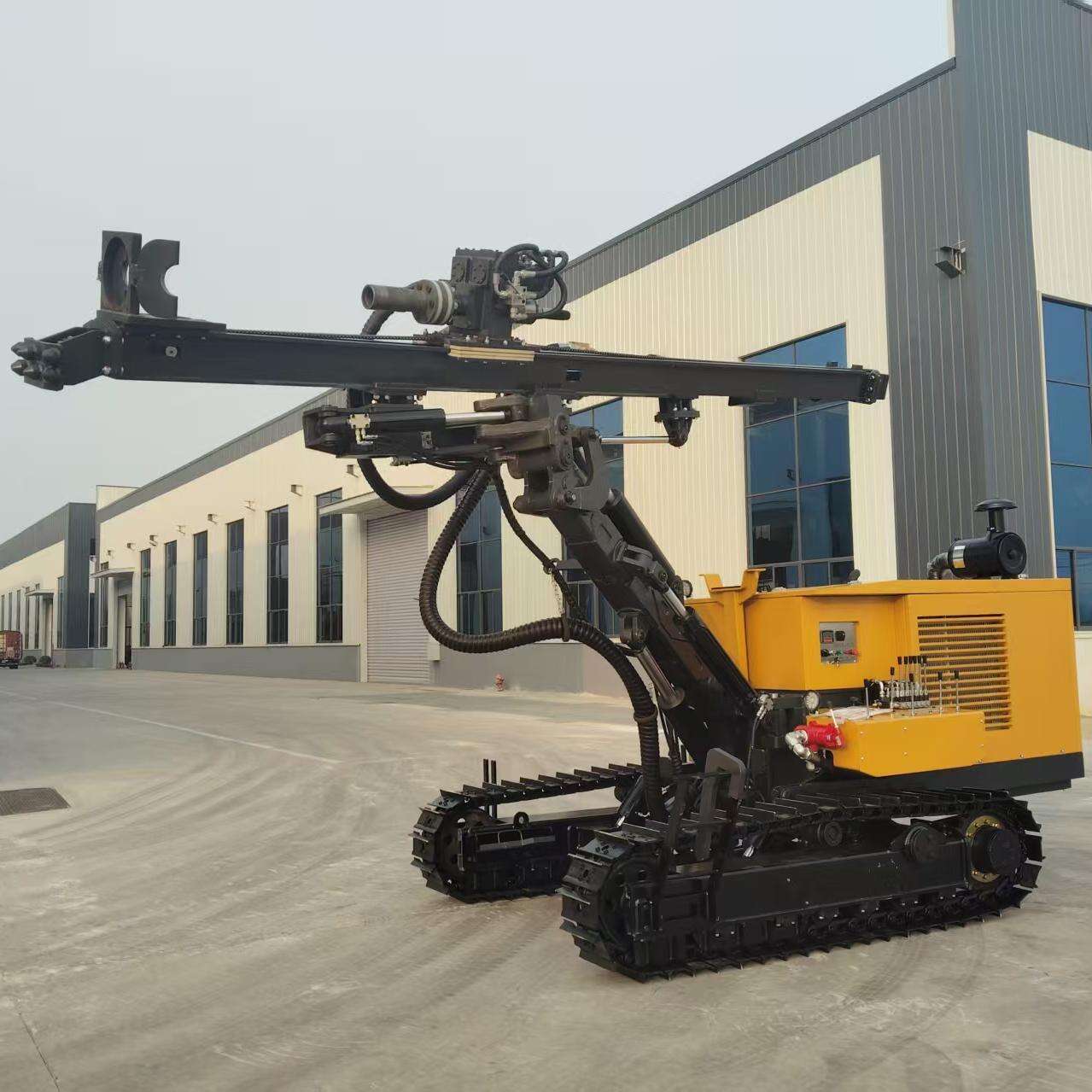 Down-the-hole (DTH) drilling rigs are engineering machines specifically designed for drilling in hard rock formations. Their core feature is the "down-the-hole" working method, where the impactor is lowered to the bottom of the hole. Compressed air or hydraulic pressure drives a piston to directly impact the drill bit, breaking the rock, while the drill rod rotates to cut and remove rock cuttings, achieving efficient impact-rotary composite drilling. This equipment is primarily used for drilling operations in mining blast holes, tunnel engineering, slope anchoring, and geological exploration.